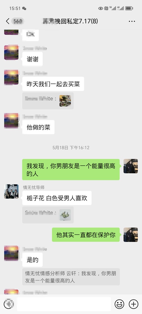 这位学员和男朋友在一起五年,双方性格属于互补,男方属于事业型,完美主义,并且特别细腻,能照顾到女生的情绪。而女生在对对方心思察觉和给到对方情绪价值方面是比较弱。时间积累,男方对女生也有很多不满,比如说对方不会做饭,缺乏女性温柔的一面,并且女生在沟通方式上,偏向直来直去,理性沟通,女生找到我们的时候,已经冷战很久。后续我们教她如何懂男人的心理,如何从生活细节上去打动男人,后续逐渐的引导,男方也愿意跟对方讲更多自己的心里话,并且规划一起去旅行
